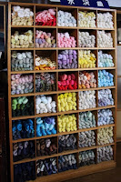 紅花のピンクだけじゃなく、いろんな色に染められた絹糸。